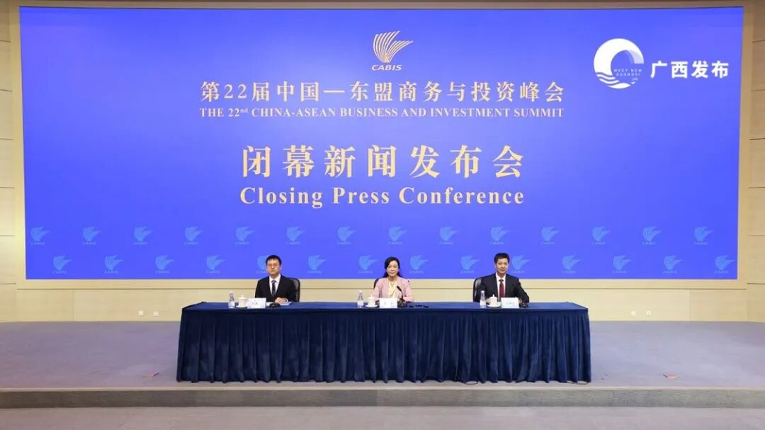 第22届中国—东盟商务与投资峰会闭幕新闻发布会现场。图源:广西发布