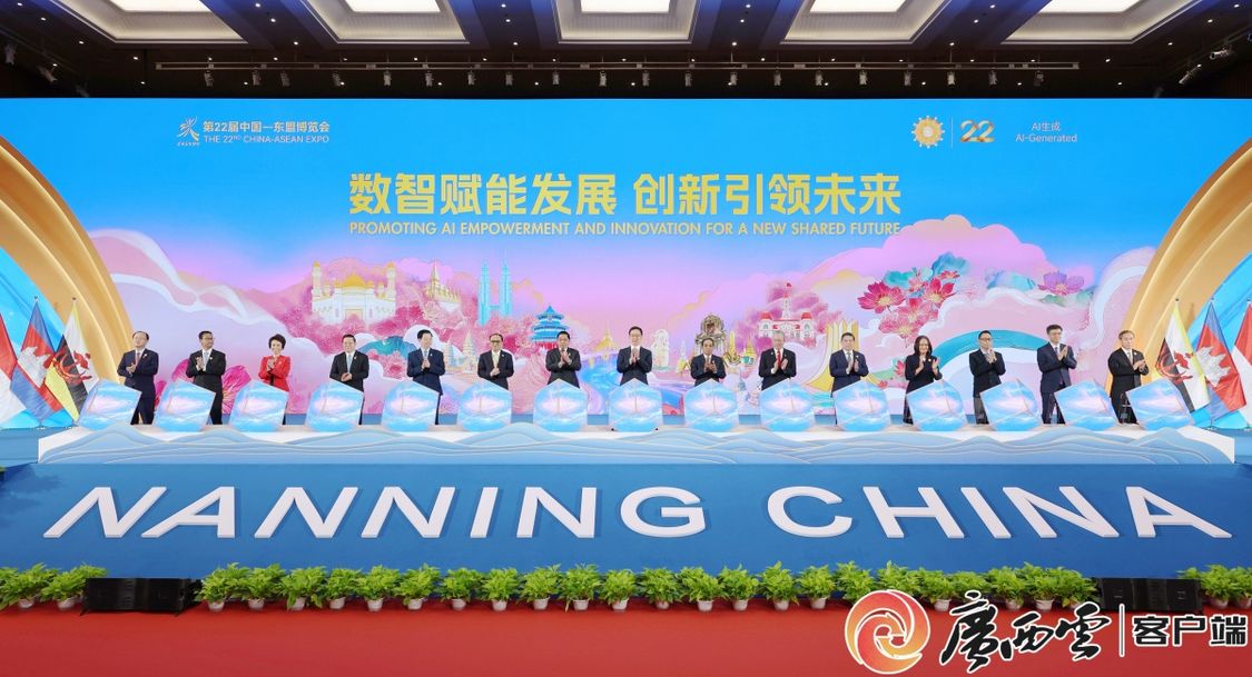 9月17日,以“数智赋能发展 创新引领未来——以中国—东盟自贸区3.0版新机遇助建命运共同体”为主题的第22届中国—东盟博览会、中国—东盟商务与投资峰会在南宁开幕。国家副主席韩正宣布博览会开幕,并与嘉宾共同启幕。广西云-广西日报记者 黄克 摄
